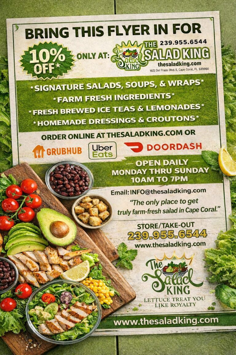When you’re looking for a fresh, flavorful salad in Cape Coral, FL, make The Salad King your first stop. Our passion is bringing the freshest ingredients and boldest flavors to the heart of Cape Coral.